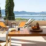 Situated 4.4 km from Reserve Naturelle des Iles Cerbicales, the beachfront Villa Marinarca Sitew Porto Vecchio Marina Di Fiori Vue Mer Piscine Chauffee Clim Plage A Pied Tennis invites guests to relax at a terrace. Guests can enjoy horse riding, lawn tennis, and badminton at this 5-bedroom villa, located 3.6 km from Porto-Vecchio Plongee.